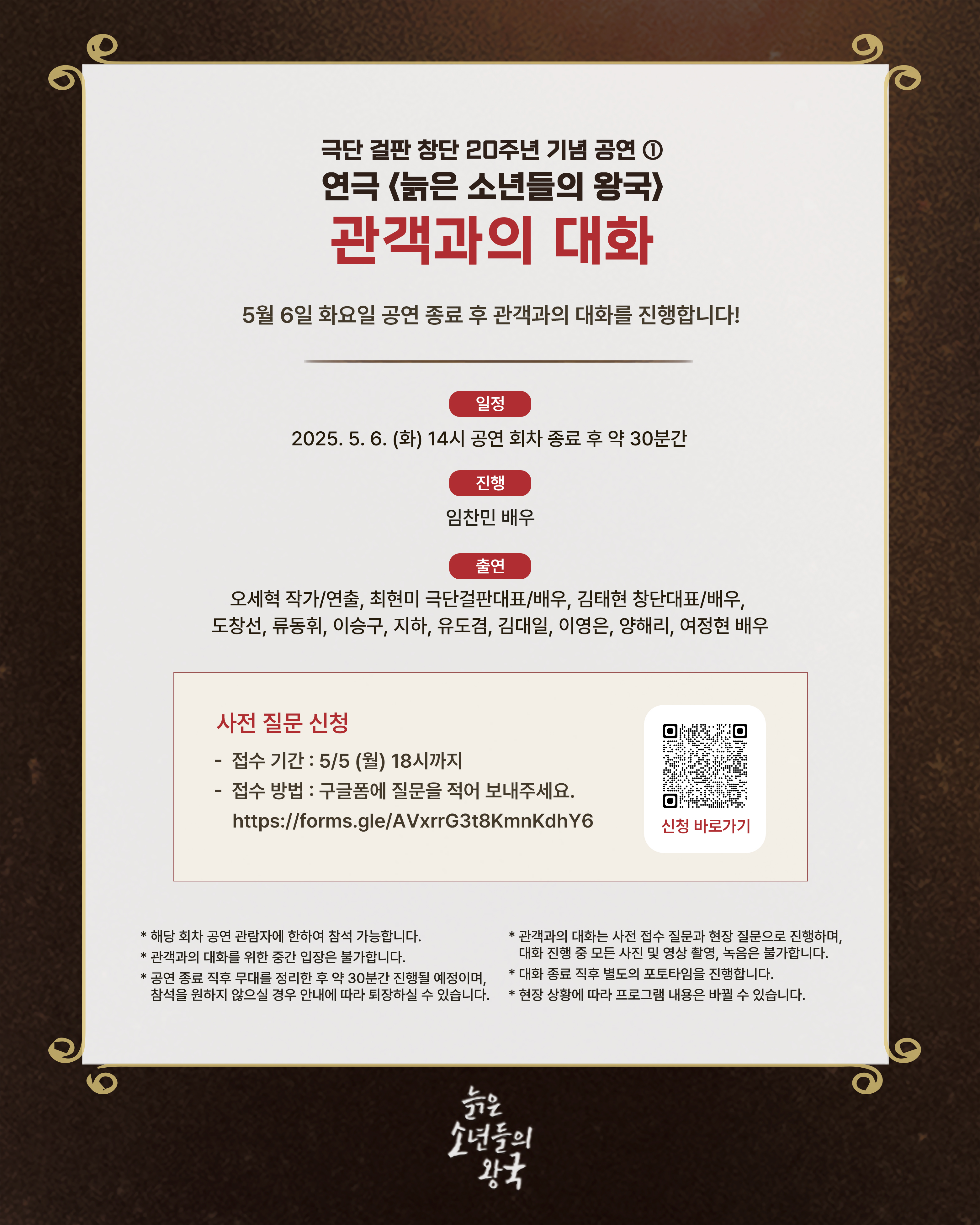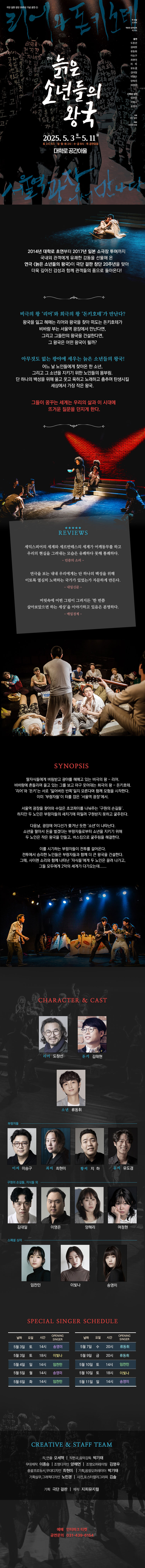 토 2시, 6시 | 일, 월, 화 2시 | 수, 금 8시 | 목 공연 없음