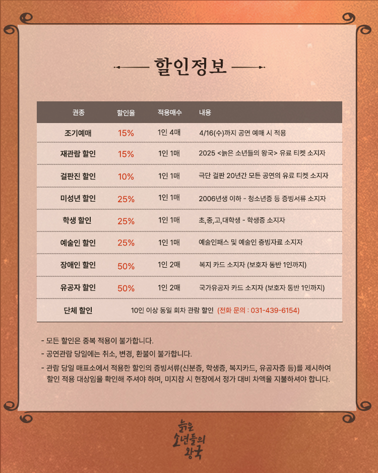 - 관람일 2일전 ~ 취소기한까지: 티켓금액의 30%