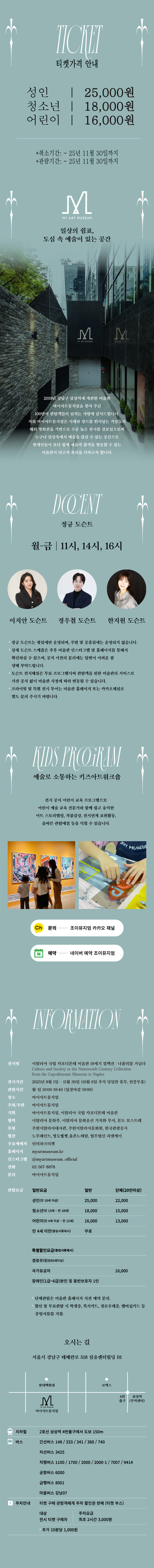 전시일정 : 2025년 8월 1일 - 11월 30일 (10월 6일 추석 당일만 휴관 / 연중무휴 )