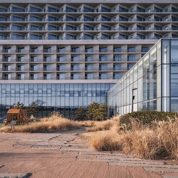 씨마크는 잘 알려진 대로 세계적인 건축가 리처드 마이어가 설계했다. 그의 수많은 커리어 중 호텔 프로젝트는 씨마크가 처음이라는 사실. 건물로 시를 쓰는 건축가, 흰색의 건축가라고 불리는 수식어처럼 리처드 마이어가 설계한 씨마크의 공간은 순백에 가까운, 여백이 있는 건축적 아름다움이 가득하다.
