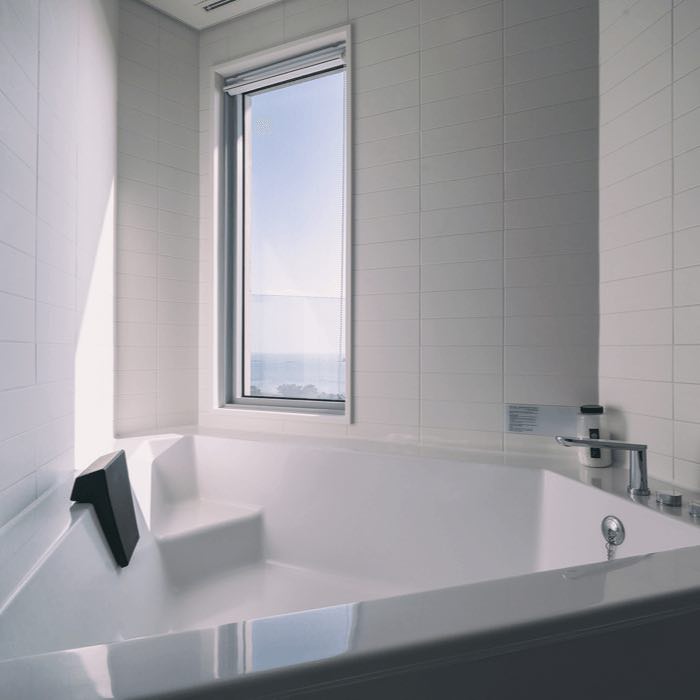샤워실, 화장실이 별도로 구분되어 있고, 욕조는 오픈된 공간으로 나와 통유리창을 마주하고 있다. 덕분에 늘 닫혀있는 공간에서의 배스 타임과 차원이 다른 즐거운 시간을 보낼 수 있다. 호텔이 좋은 이유 중 하나는 이처럼 내 공간에서는 없는 특별한 인테리어, 여기에 언제든 준비된 서비스가 주는 낯설고도 특별한 느낌에서다. 진정으로 대접받는 기분 속에서 마치 영화 속 주인공이 된 듯한 호강을 만끽해보자.