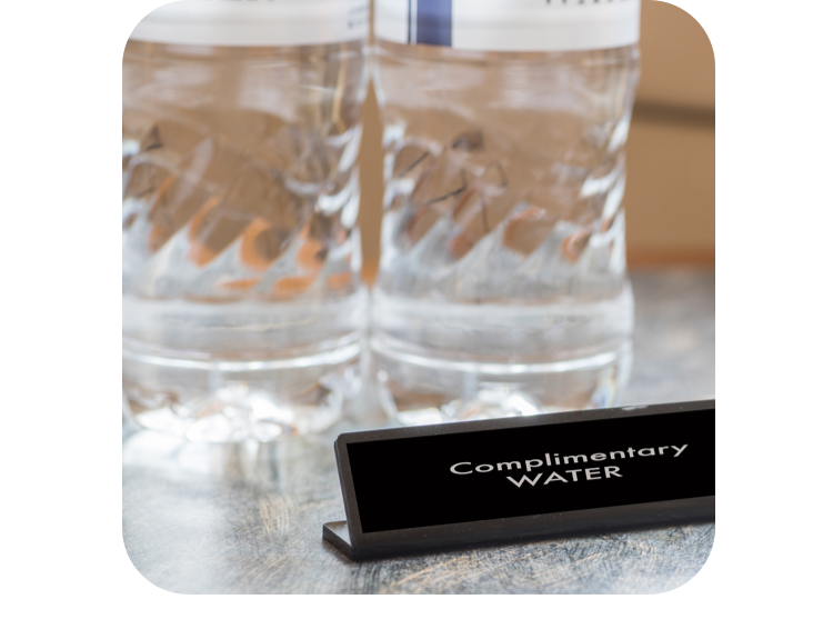 객실 내에서 이 문구를 발견했다면 그 제품은 무료로 제공된다는 의미다. 보통 미니바 위에 놓인 생수 2병이나 커피, 티백 등이 해당된다. 필요시 더 요청할 수 있다.