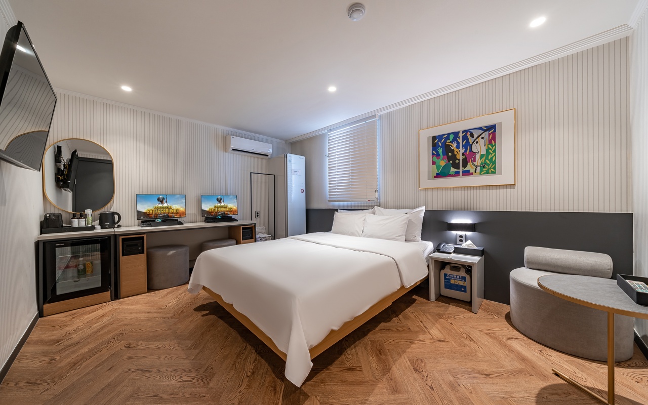 더블 침대 1개전반적으로 깨끗하고 쾌적한 환경을 제공하며, 고객들은 시설의 청결함과 편안함에 대해 높은 만족도를 보이고 있습니다. 위치 또한 편리하여 주변 음식점과의 접근성이 좋으며, 주차 서비스도 제공됩니다. 방음이 양호하고 방이 넓다는 점이 장점으로 언급되었으며, 친절한 직원들의 서비스 또한 호평받고 있습니다. 가성비가 뛰어난 숙소로, 재방문 의사가 높은 곳입니다.