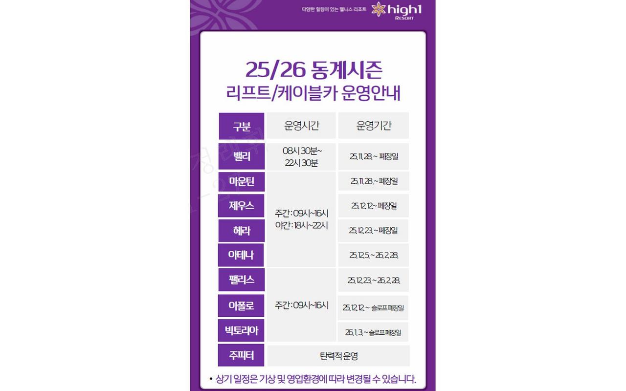■ 하이원 운탄고도 케이블카 및 시즌 영업장 운영안내