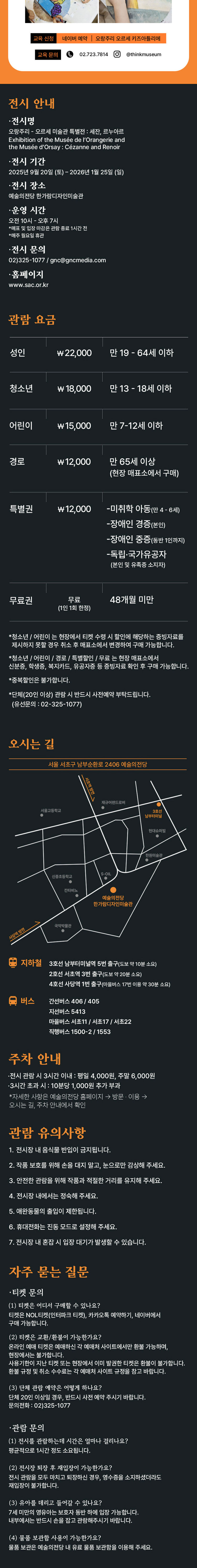 - 매표 및 입장 관람 종료 1시간 전 마감(18시에 마감)