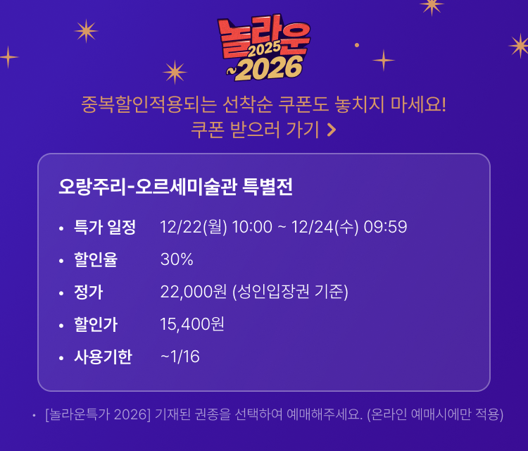 ![[놀라운특가]오랑주리-오르세미술관 특별전 (~26.1.16까지 사용)](https://ticketimage.interpark.com/Play/image/large/25/25018193_p.gif)