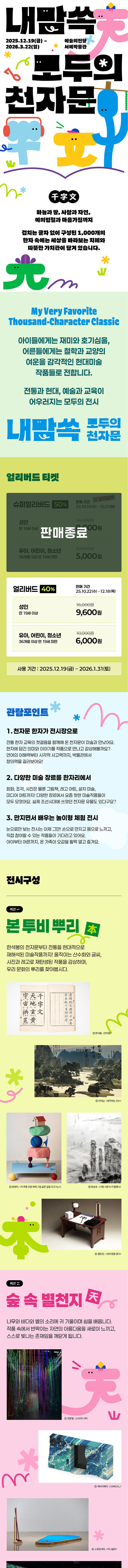 ![[얼리버드] 내맘쏙 : 모두의 천자문 전](https://ticketimage.interpark.com/Play/image/large/25/25014514_p.gif)