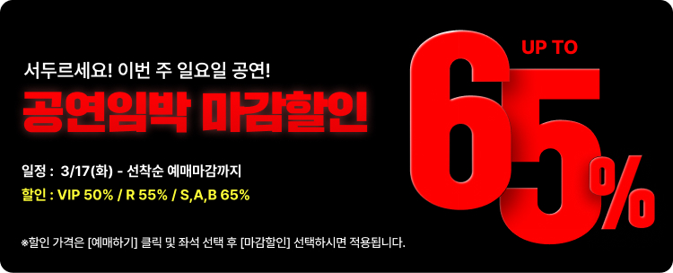 - 관람일 2일전 ~ 취소기한까지: 티켓금액의 30%
