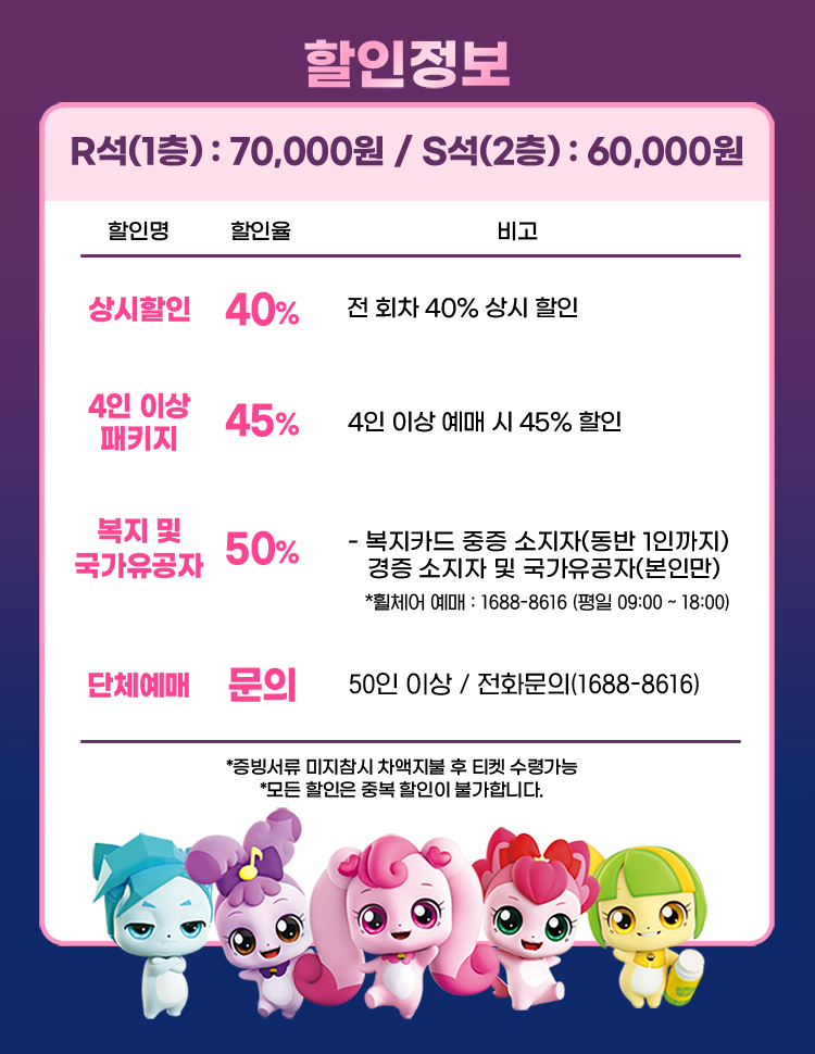 - 특정 기간, 특정 공연일에만 판매하는 가격이 있으니 예매 전 [가격 전체 보기]를 눌러 확인해 주세요.