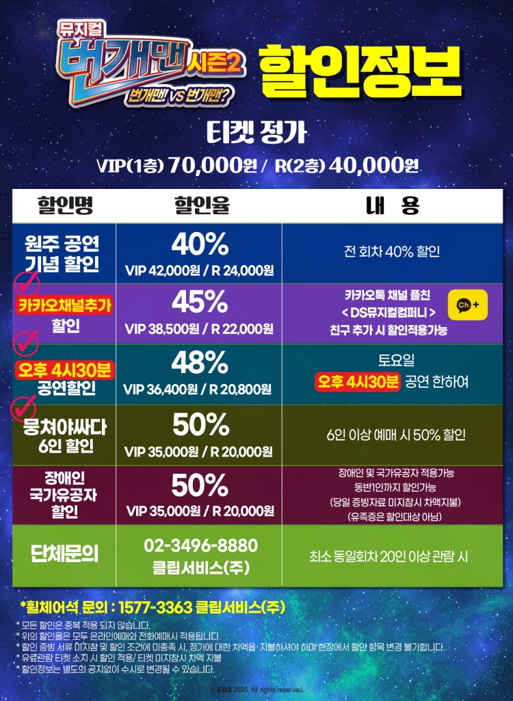 - 관람일 2일전 ~ 취소기한까지: 티켓금액의 30%
