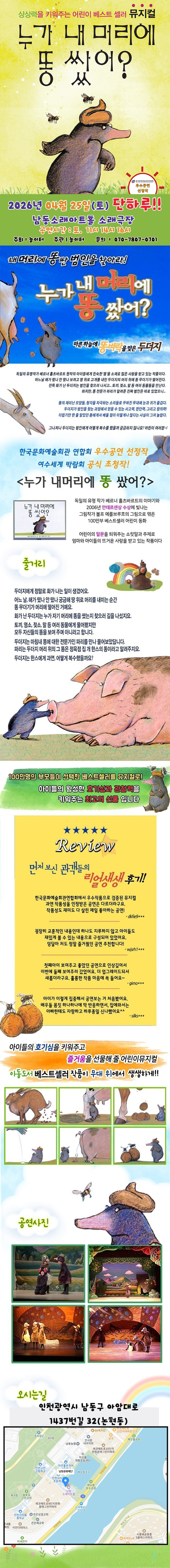 2026 베스트셀러 뮤지컬〈누가 내 머리에 똥 쌌어?〉 - 인천