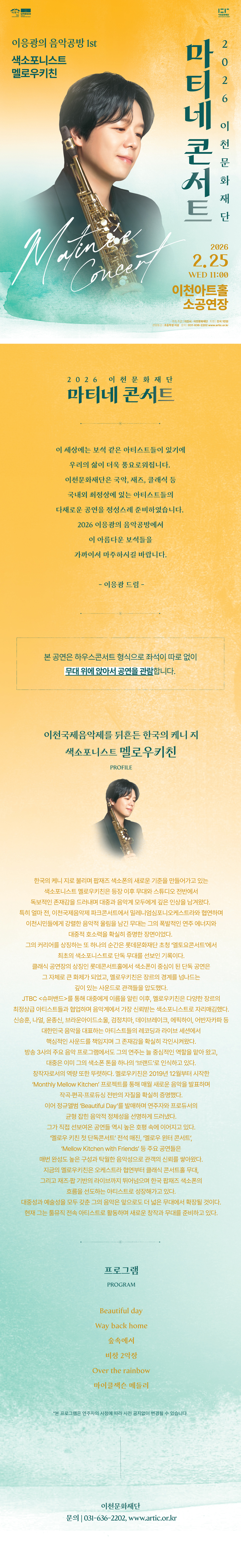 2026 마티네콘서트 이응광의 음악공방 1st ‘색소포니스트 멜로우키친’ - 이천