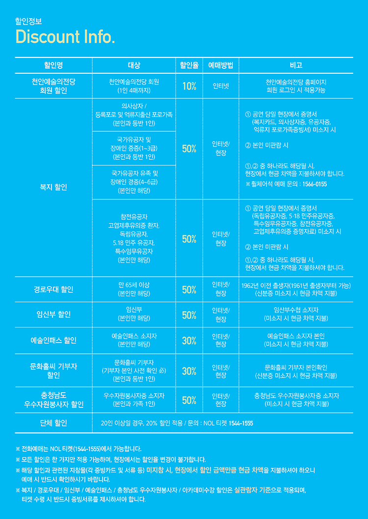 - 관람일 2일전 ~ 취소기한까지: 티켓금액의 30%