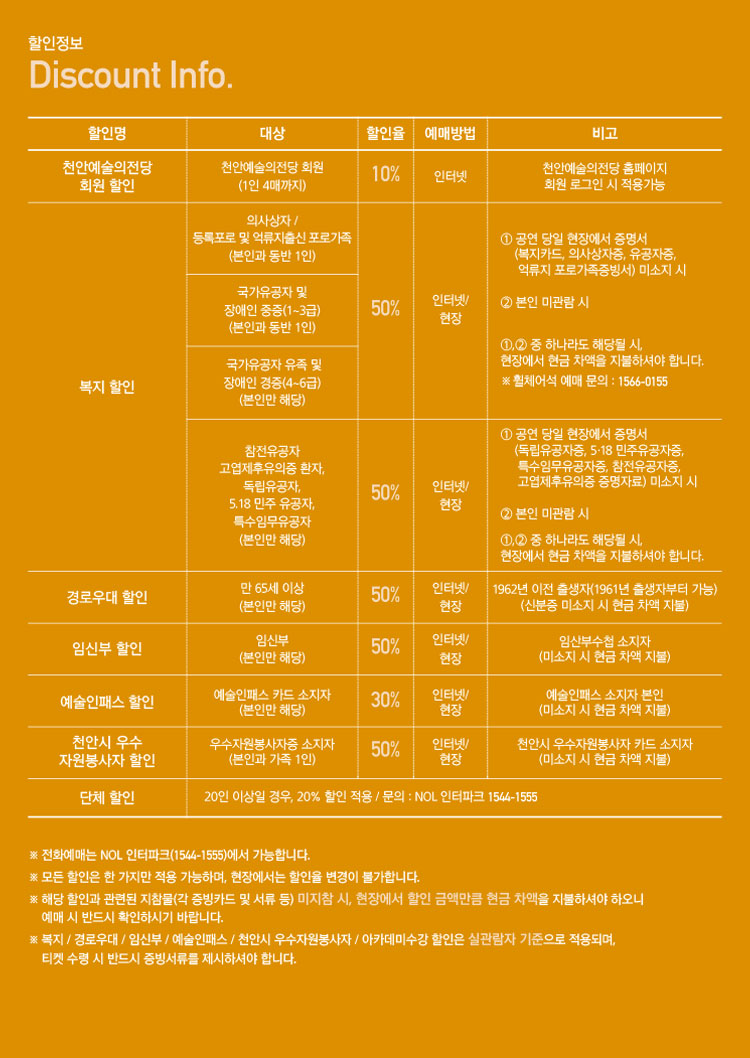 - 관람일 2일전 ~ 취소기한까지: 티켓금액의 30%