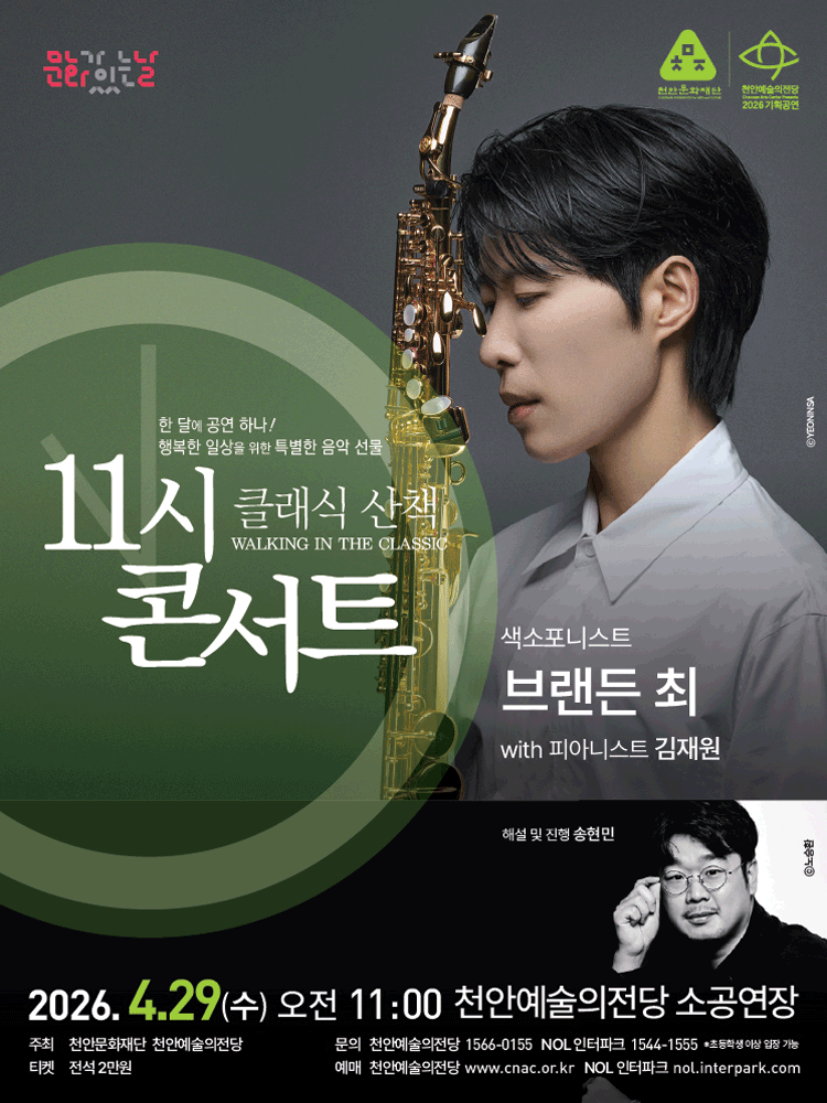 해설이 있는 11시 콘서트 4월 〈색소포니스트 브랜든 최〉 - 천안