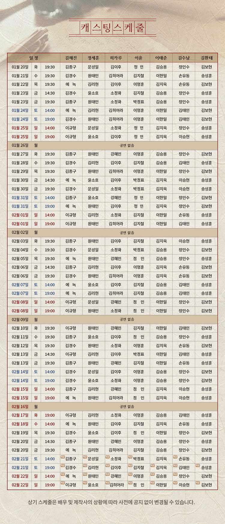 단, 2/17(화) 19:00, 2/18(수) 14:00 (1회 공연)