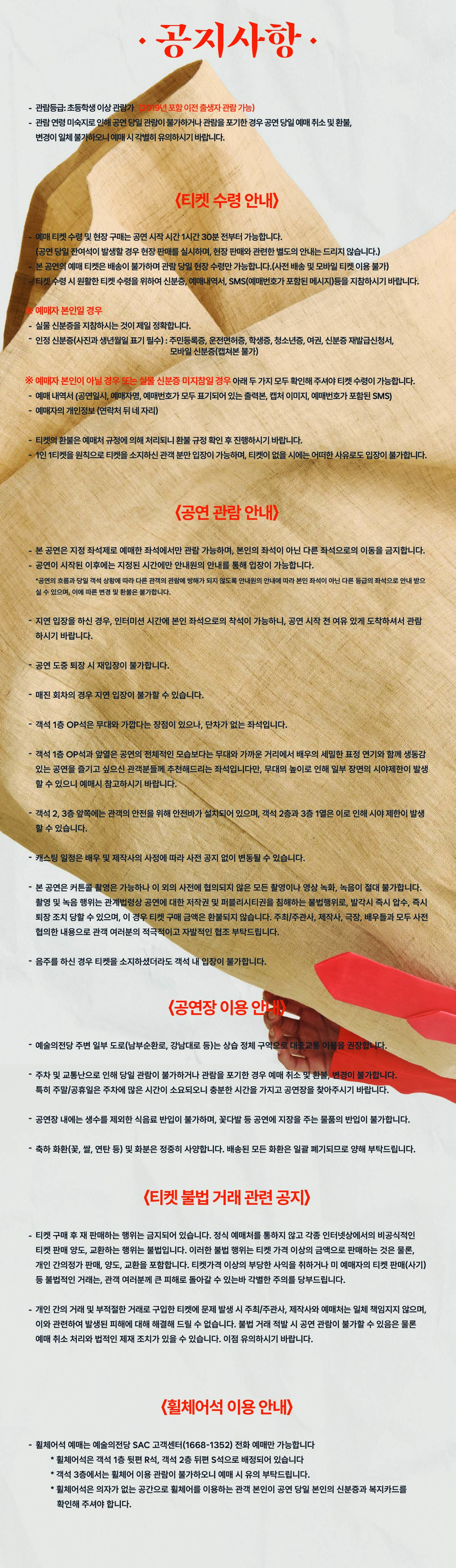 - 관람일 2일전 ~ 취소기한까지: 티켓금액의 30%