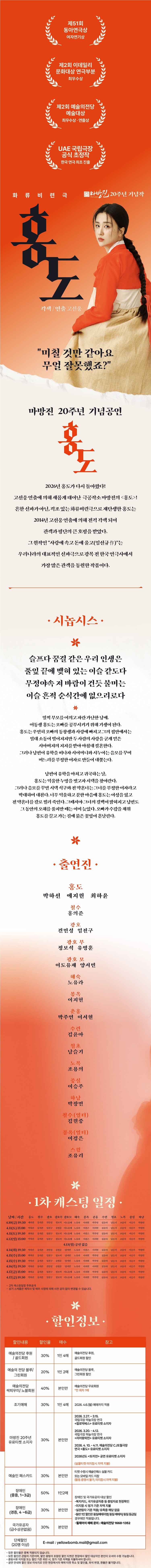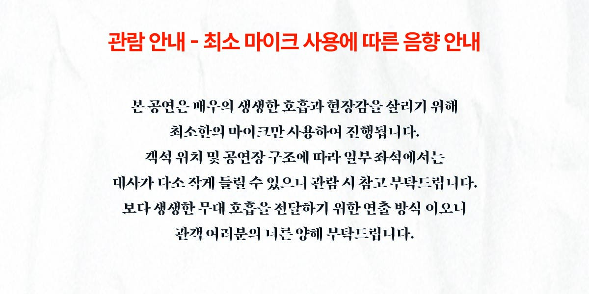 화,목 19:30 / 수,금,토 15:00, 19:30 / 일 15:00(월요일 공연 없음)