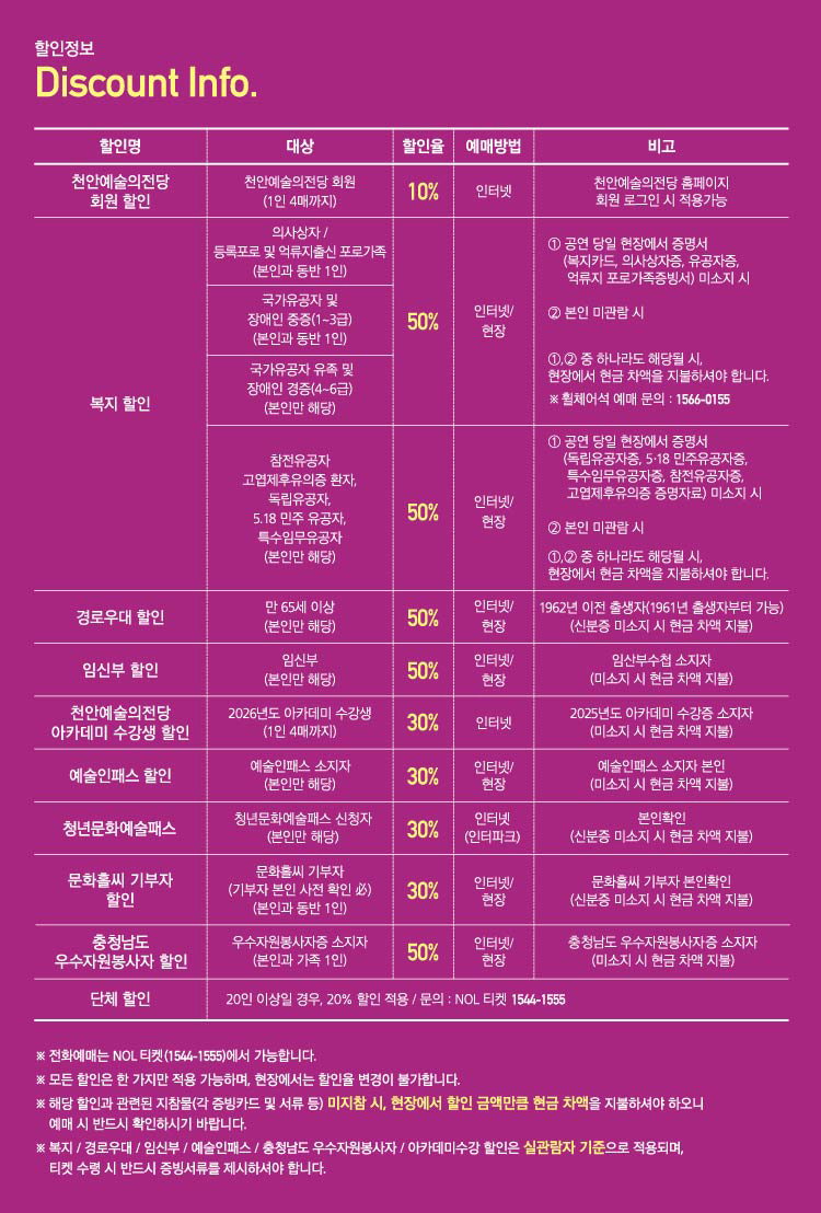 - 특정 기간, 특정 공연일에만 판매하는 가격이 있으니 예매 전 [가격 전체 보기]를 눌러 확인해 주세요.