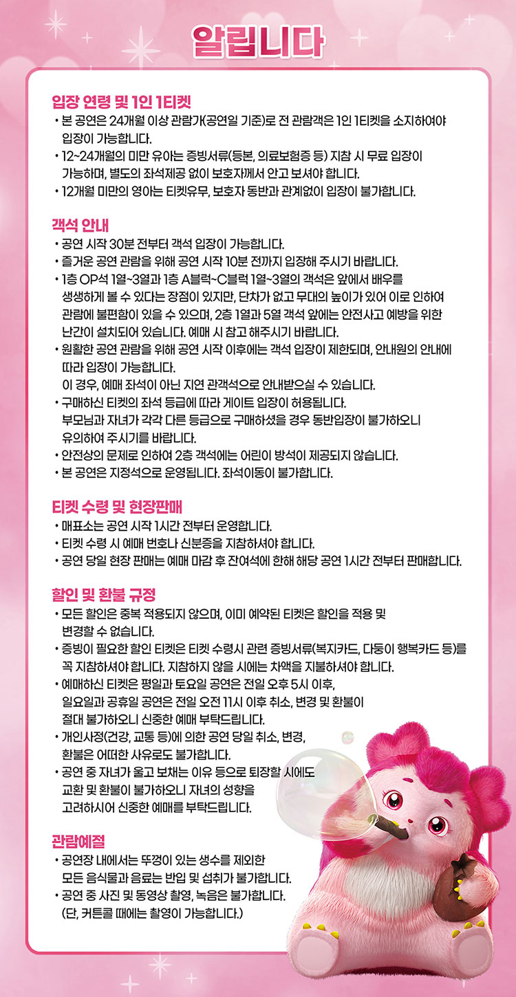 - 특정 기간, 특정 공연일에만 판매하는 가격이 있으니 예매 전 [가격 전체 보기]를 눌러 확인해 주세요.