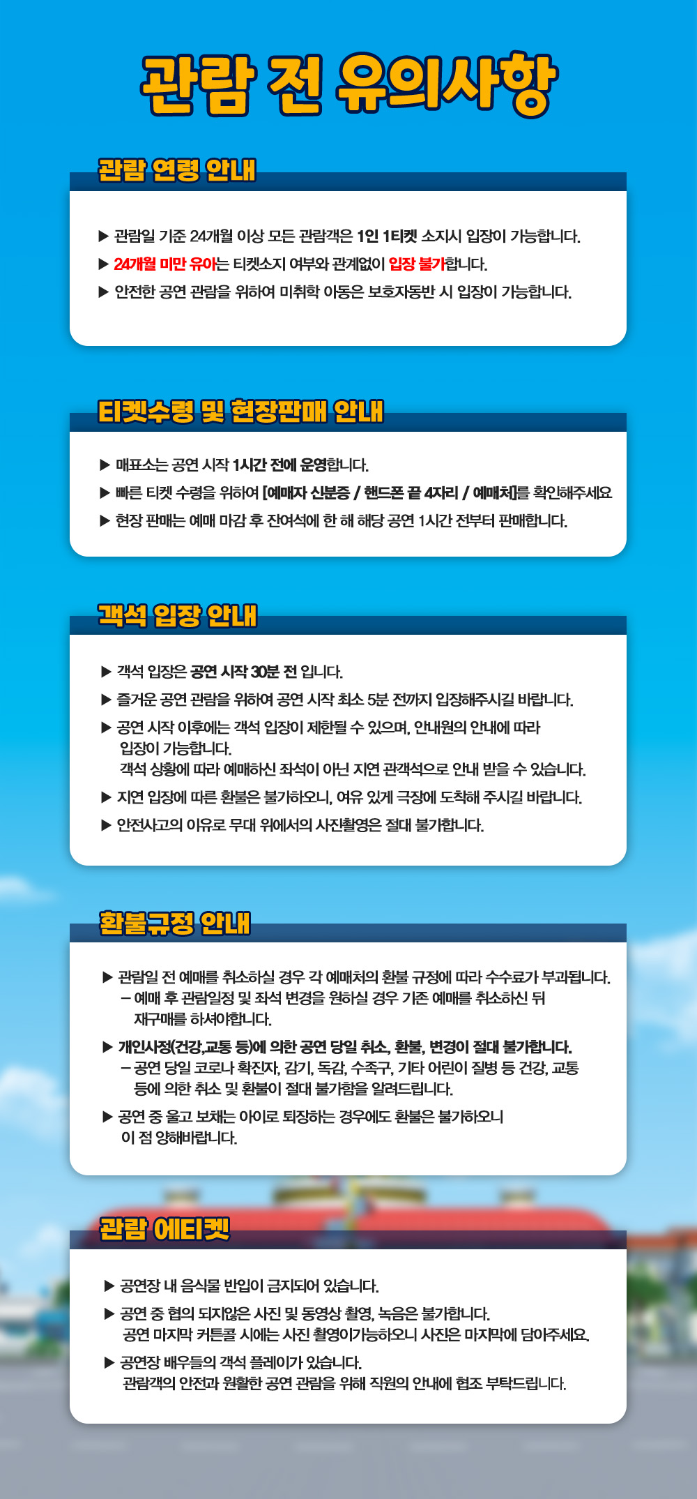 - 관람일 2일전 ~ 취소기한까지: 티켓금액의 30%