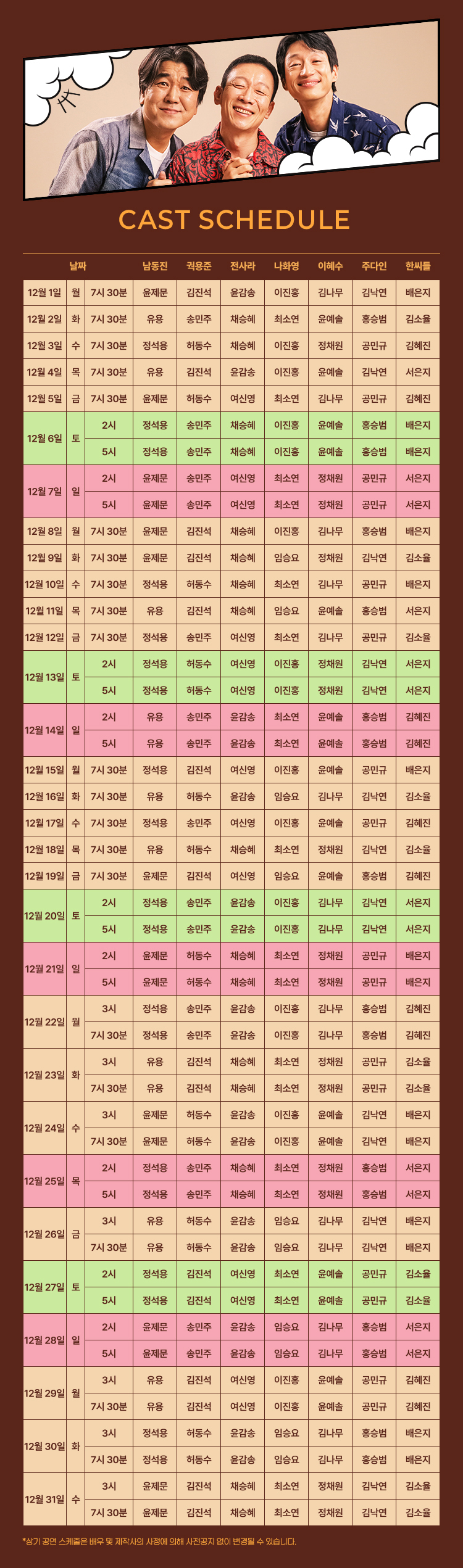 12/1~21 평일 19시 30분 / 주말 14시, 17시