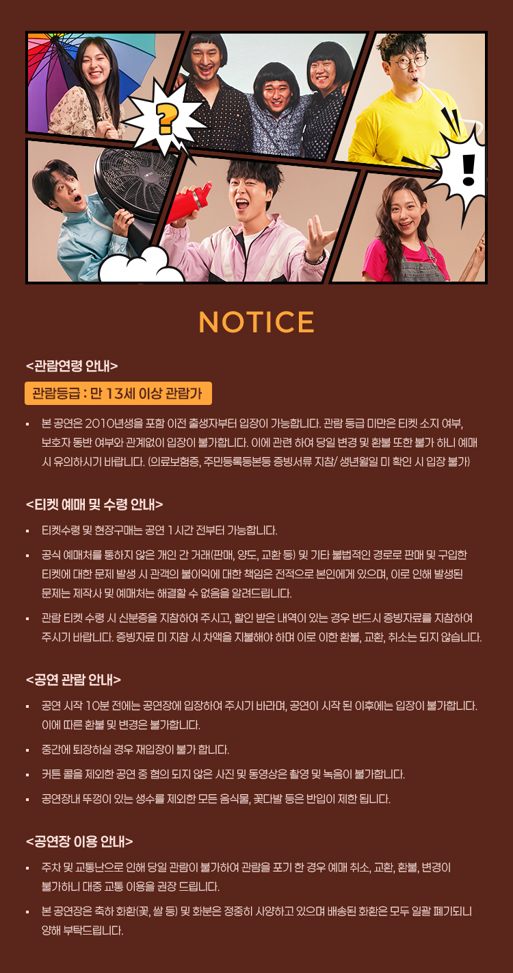 - 관람일 2일전 ~ 취소기한까지: 티켓금액의 30%