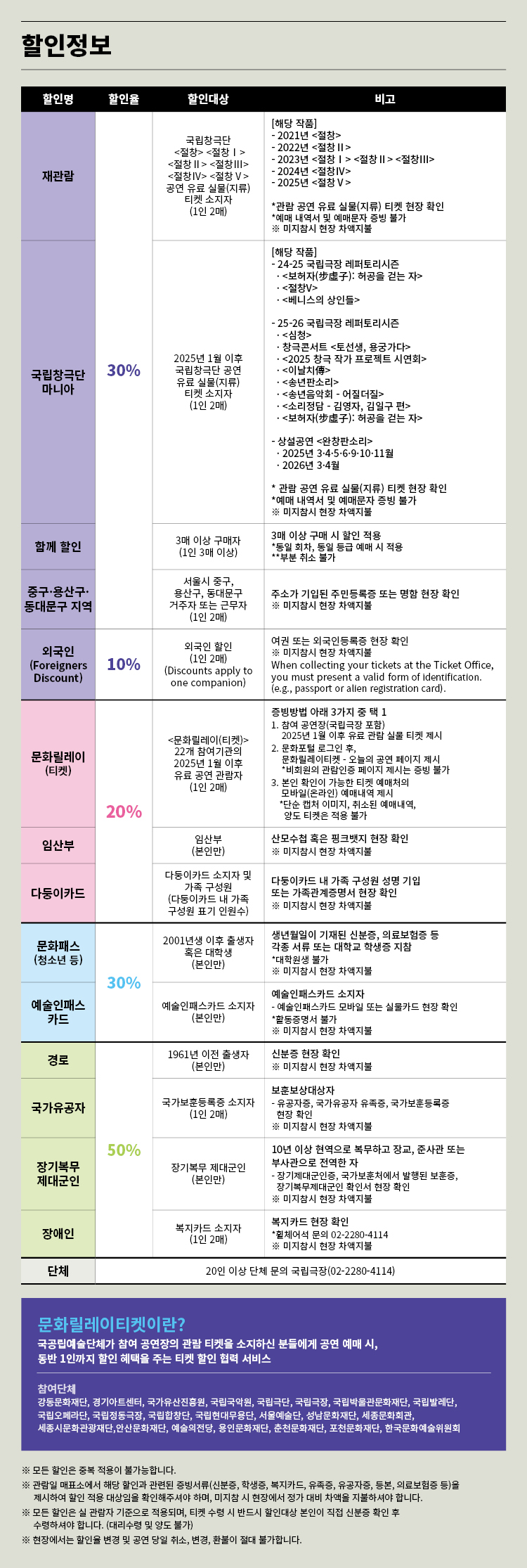 - 특정 기간, 특정 공연일에만 판매하는 가격이 있으니 예매 전 [가격 전체 보기]를 눌러 확인해 주세요.