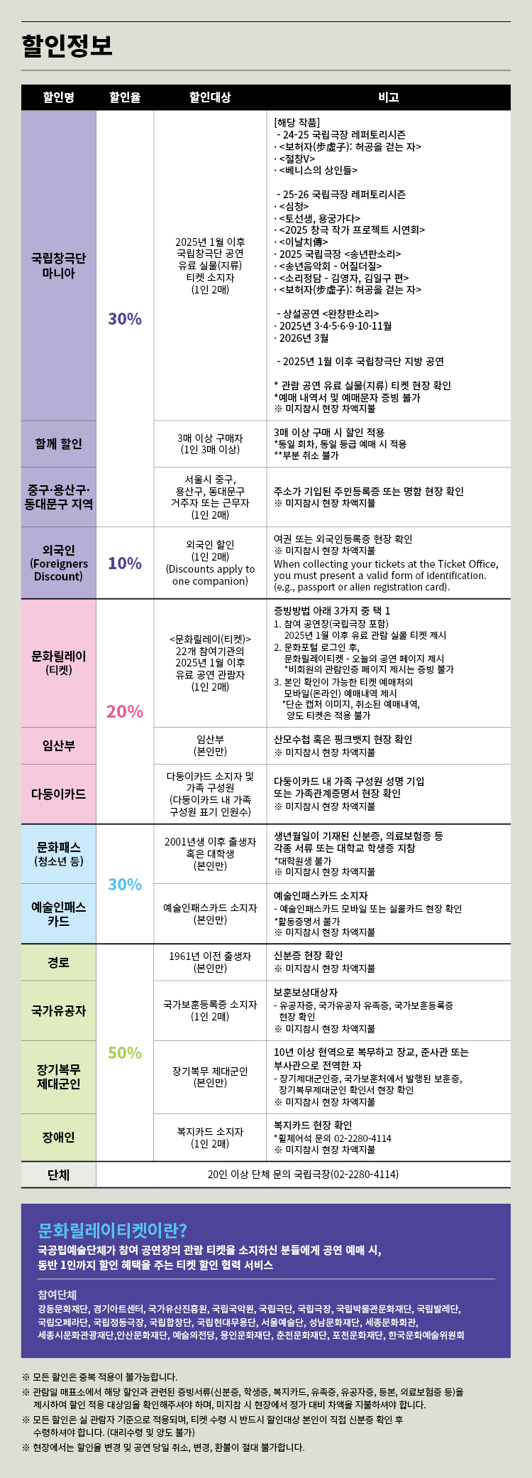 - 특정 기간, 특정 공연일에만 판매하는 가격이 있으니 예매 전 [가격 전체 보기]를 눌러 확인해 주세요.