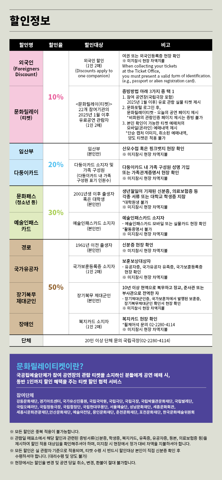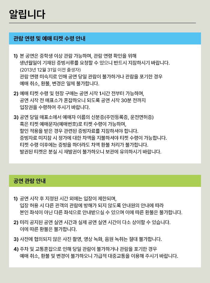 - 관람일 2일전 ~ 취소기한까지: 티켓금액의 30%
