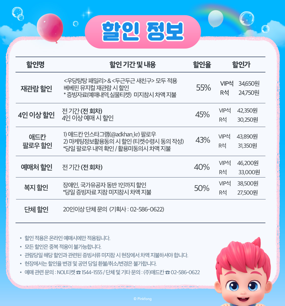 - 관람일 2일전 ~ 취소기한까지: 티켓금액의 30%