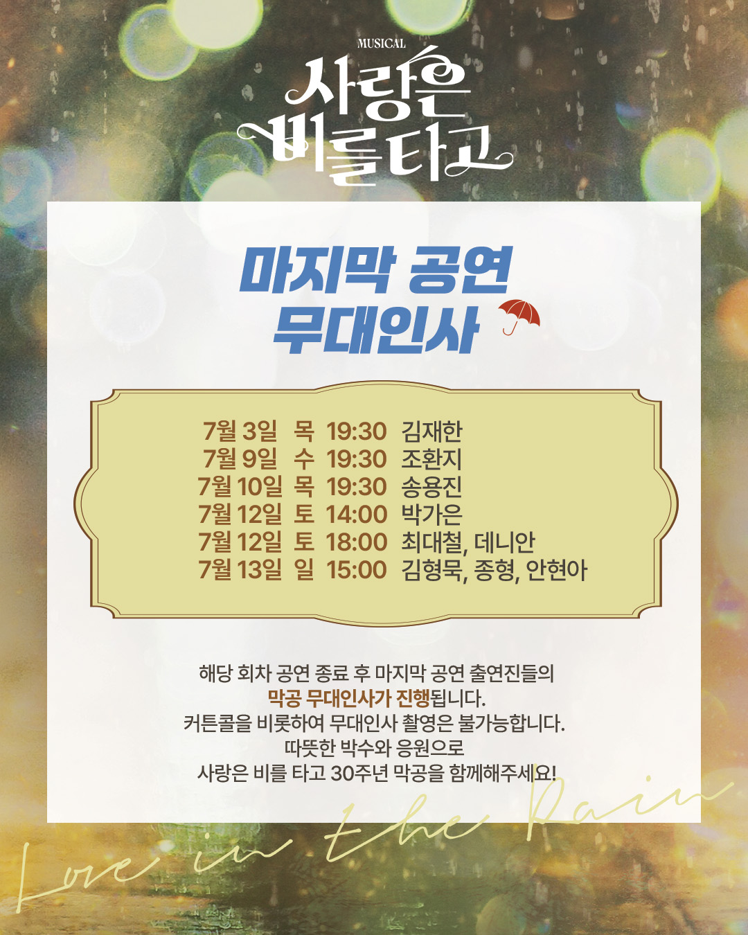 [뮤지컬 <사랑은 비를 타고> 캐스팅 변경 안내]