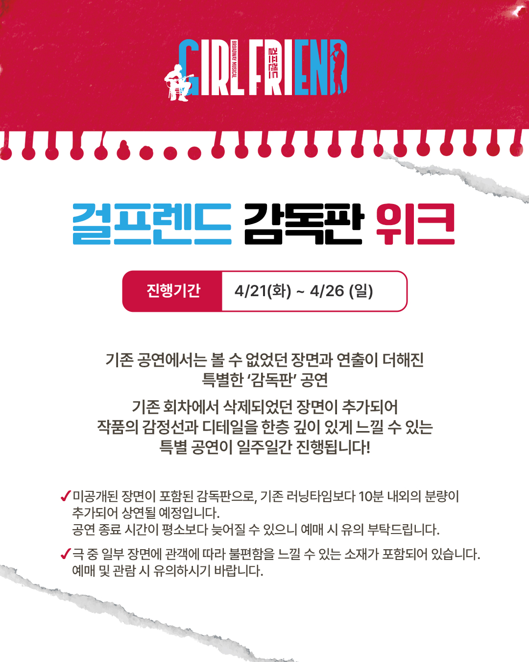 - 관람 연령 미 숙지로 인해 공연 당일 관람이 불가하거나, 관람을 포기한 경우 예매 취소 및 환불, 변경이 일체 불가하니 예매 시 주의하시기 바랍니다.