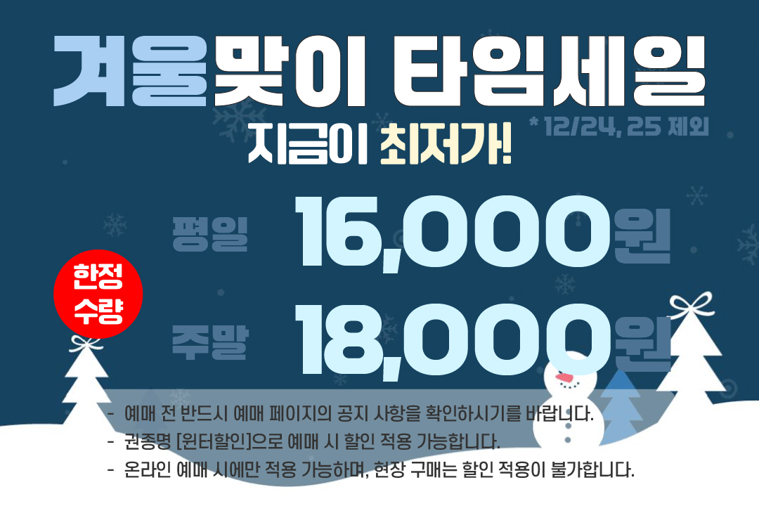 [ 12월 ] 화 5:00 / 수 2:00,5:00 / 목 5:00 / 금 5:00 / 토 3:00,5:30 / 일 3:00,5:30