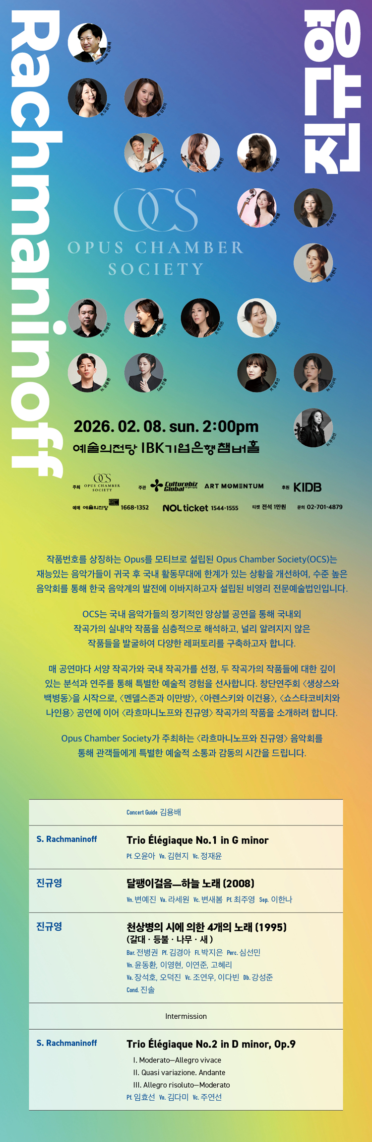 Opus Chamber Society가 주최하는 <라흐마니노프와 진규영> 음악회를 통해 관객들에게 특별한 예술적 소통과 감동의 시간을 드립니다.