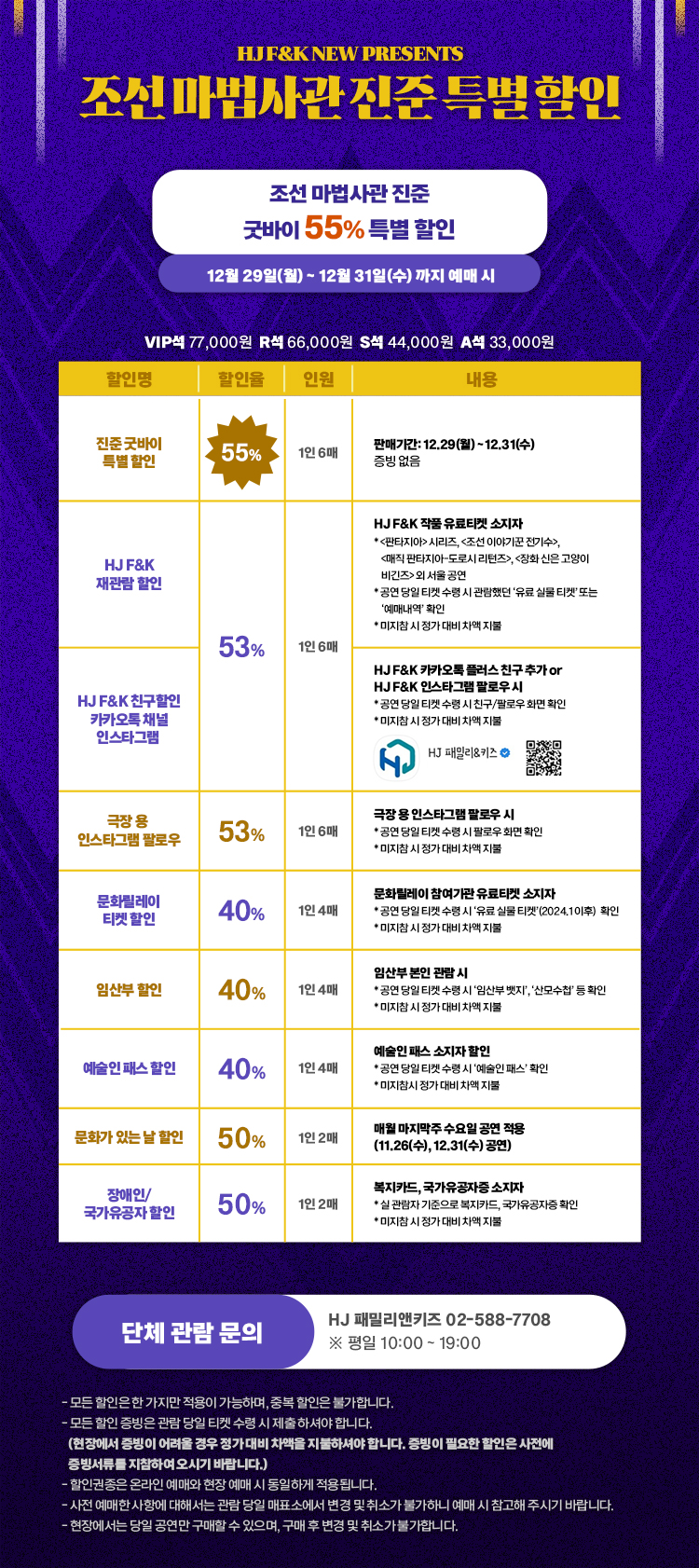 - 관람일 2일전 ~ 취소기한까지: 티켓금액의 30%