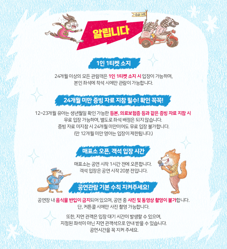 - 예매 후 7일 이내 취소시 티켓 금액 전액이 환불됩니다.(예매 수수료 제외)