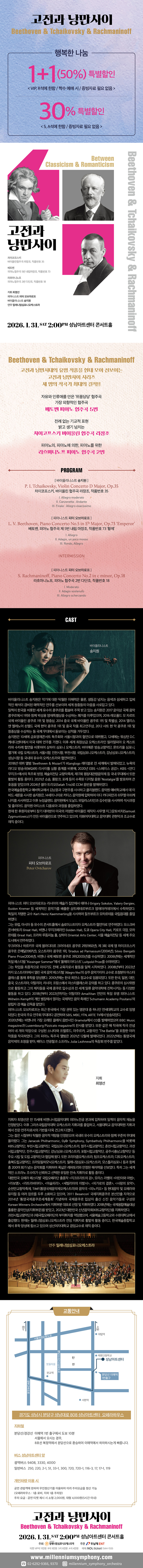2026년 1월 31일(토) 성남아트센터 콘서트홀에서 진행 예정인 ‘고전과 낭만사이 <베토벤 & 차이코프스키 & 라흐마니노프>’ 공연의 출연진 중 피아니스트 일리야 라쉬코프스키의 손가락 부상으로 인하여 공연에 출연할 수 없음을 알려드립니다.