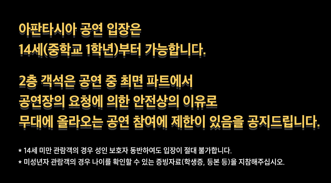 - 관람일 2일전 ~ 취소기한까지: 티켓금액의 30%