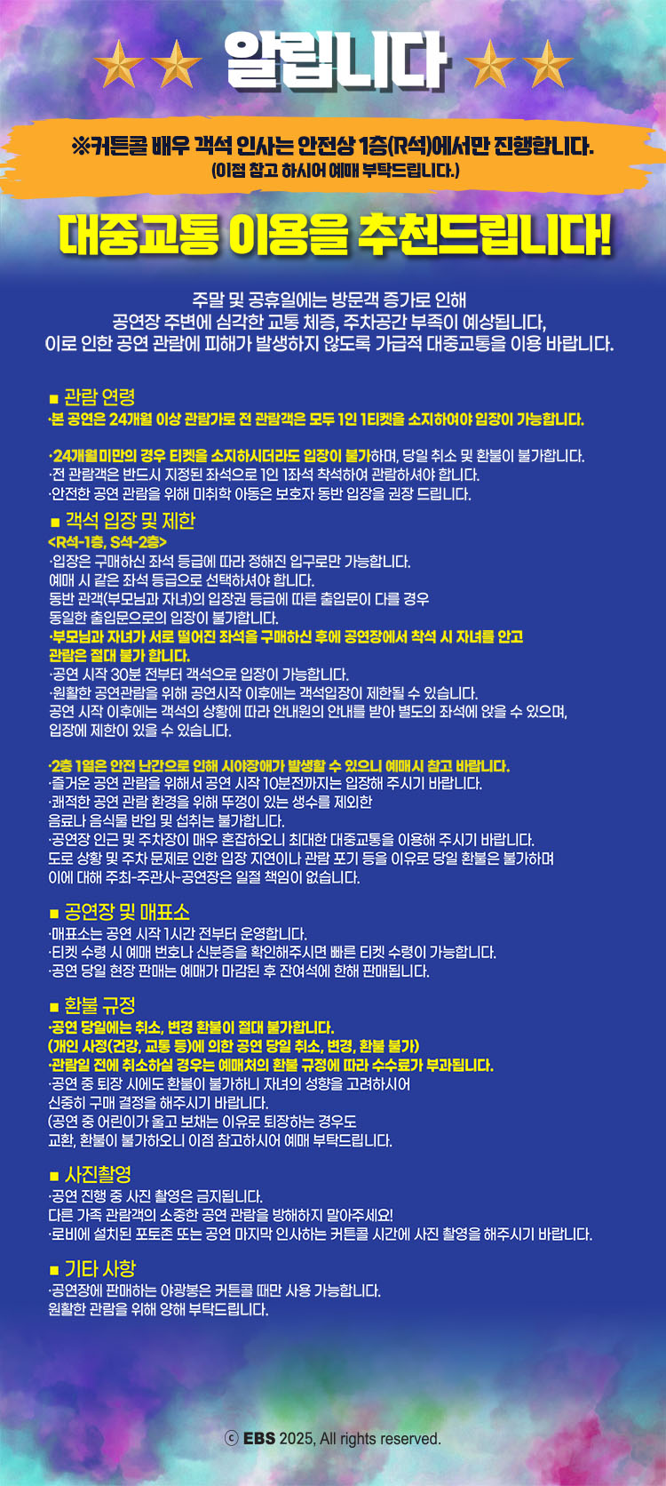 - 예매 후 7일 이내 취소시 티켓 금액 전액이 환불됩니다.(예매 수수료 제외)