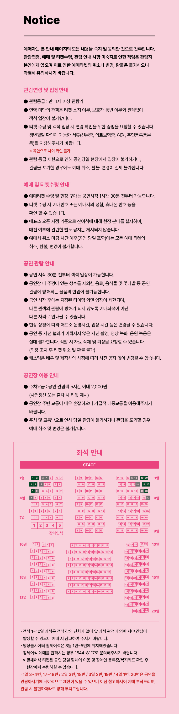 - 관람일 2일전 ~ 취소기한까지: 티켓금액의 30%