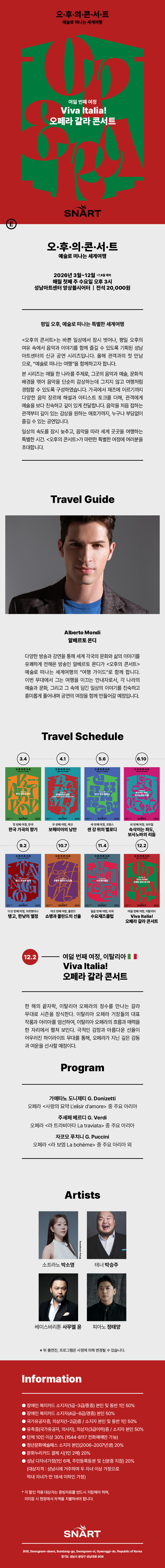 2026 성남아트센터 오후의 콘서트 - 12월 〈Viva Italia! 오페라 갈라 콘서트〉