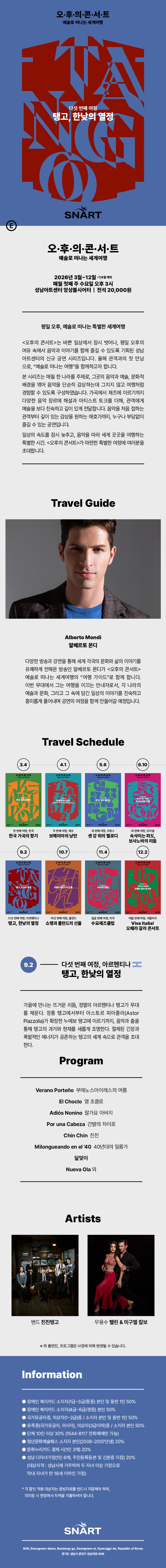 2026 성남아트센터 오후의 콘서트 - 9월 〈탱고, 한낮의 열정〉
