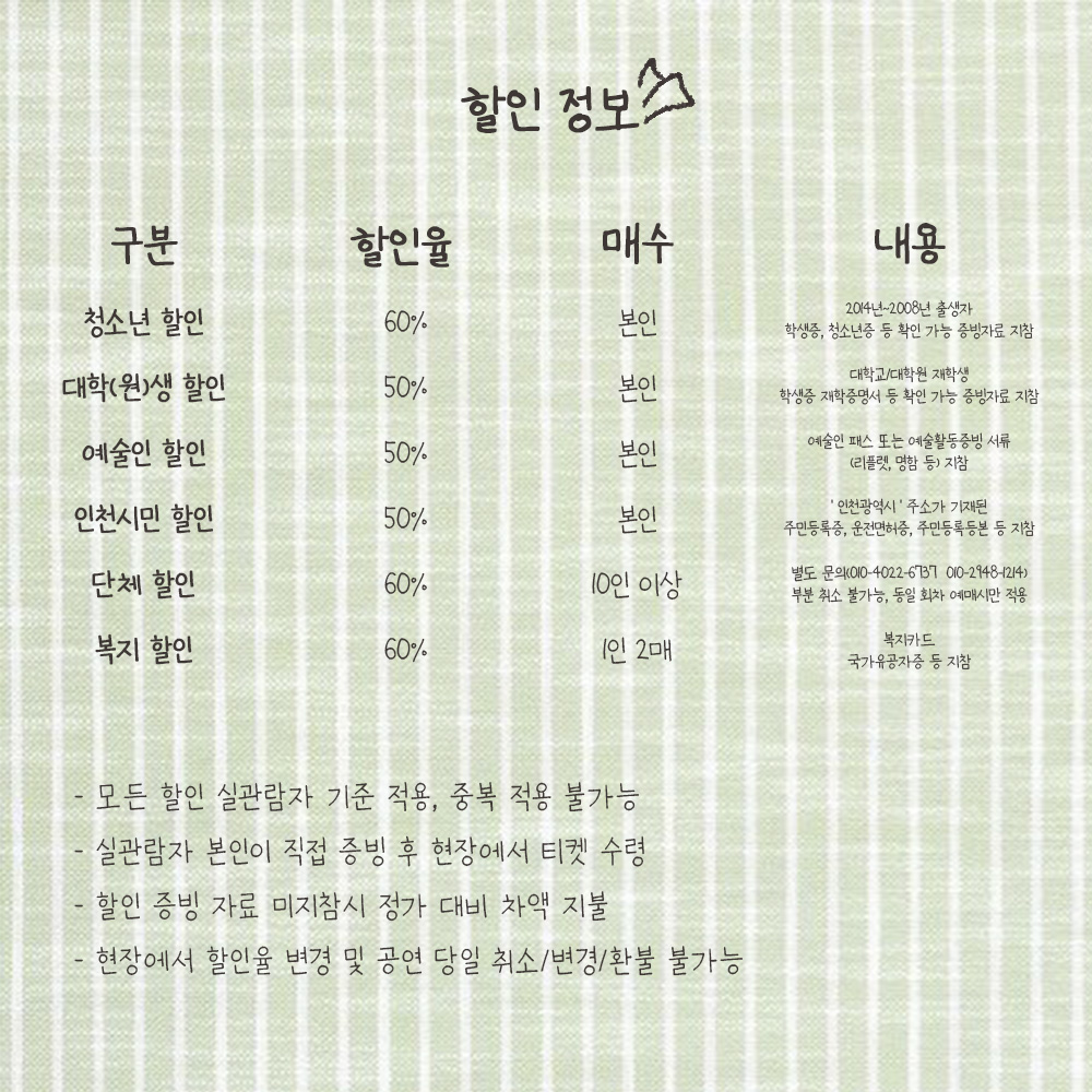 - 특정 기간, 특정 공연일에만 판매하는 가격이 있으니 예매 전 [가격 전체 보기]를 눌러 확인해 주세요.