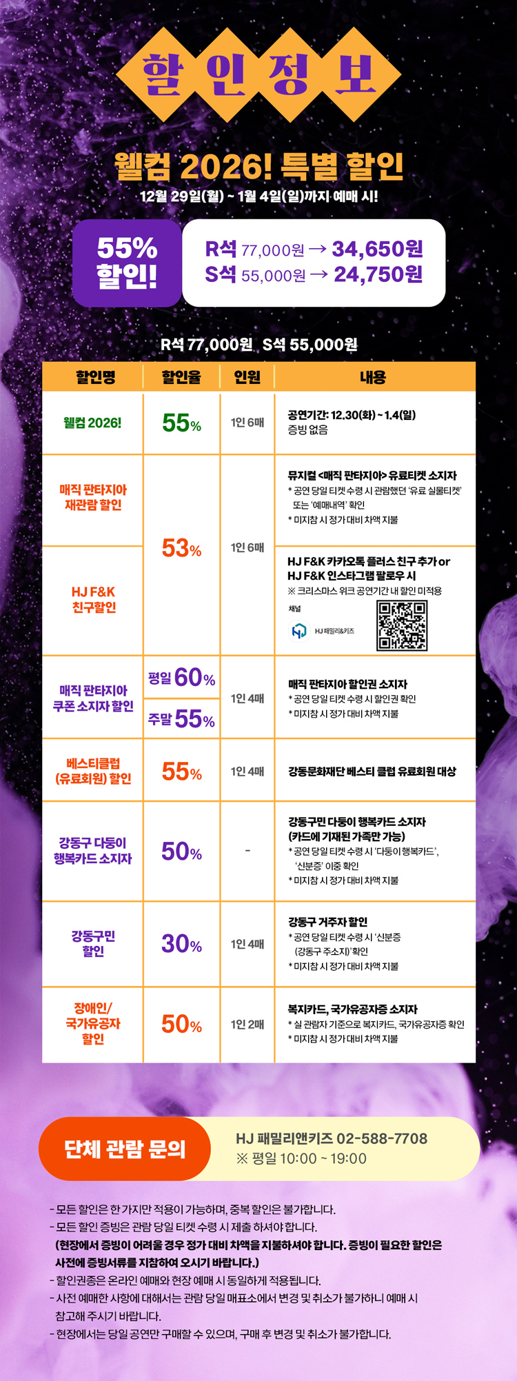 - 관람일 2일전 ~ 취소기한까지: 티켓금액의 30%