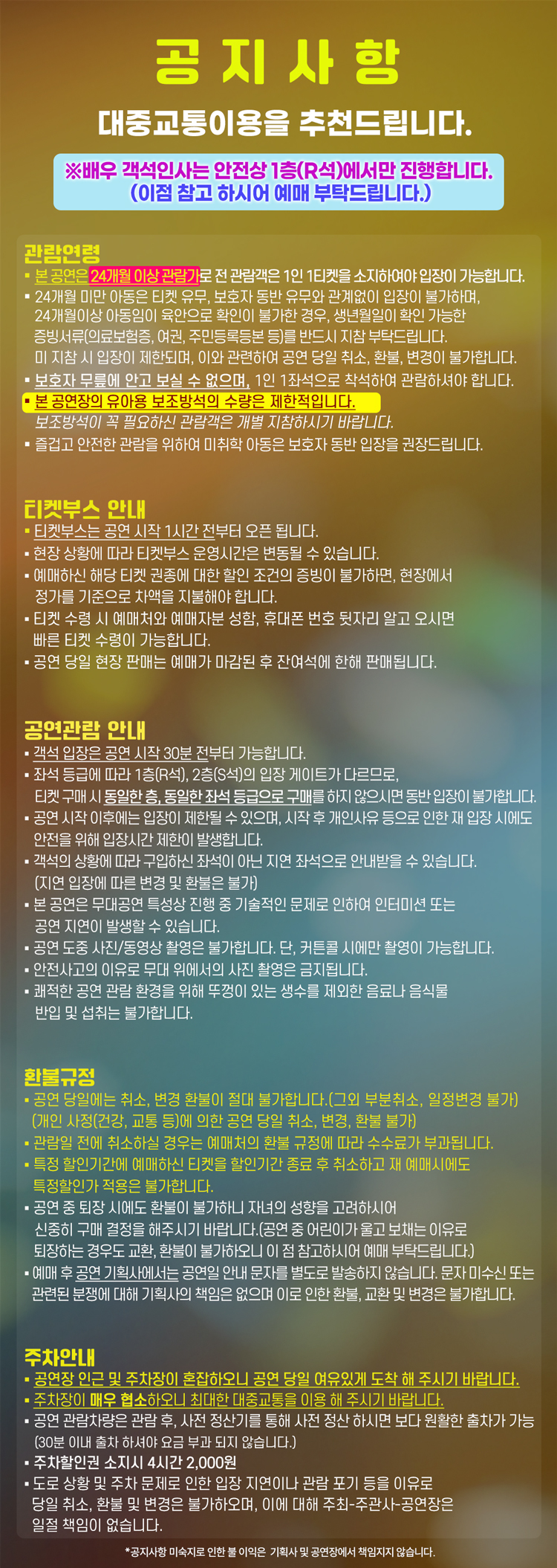 예매가능시간: 전회차 공연관람 전 목요일 오후 5시까지