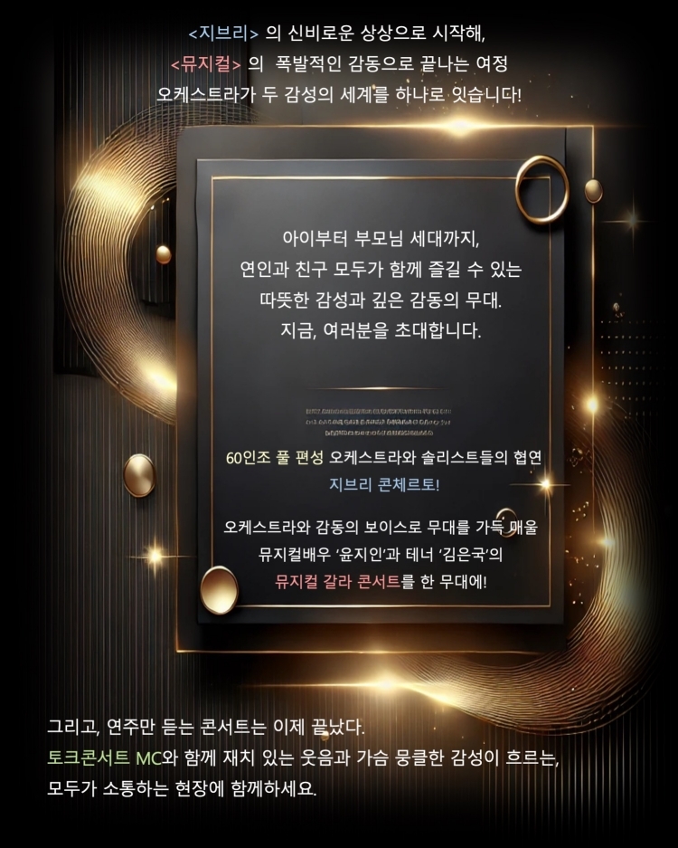 본 공연은 영화 장면이나 영상 상영 없이, 풀 편성 오케스트라의 라이브 연주로만 진행됩니다. 스크린보다 더 깊은 감동을 귀와 마음에 담아가시길 바랍니다.