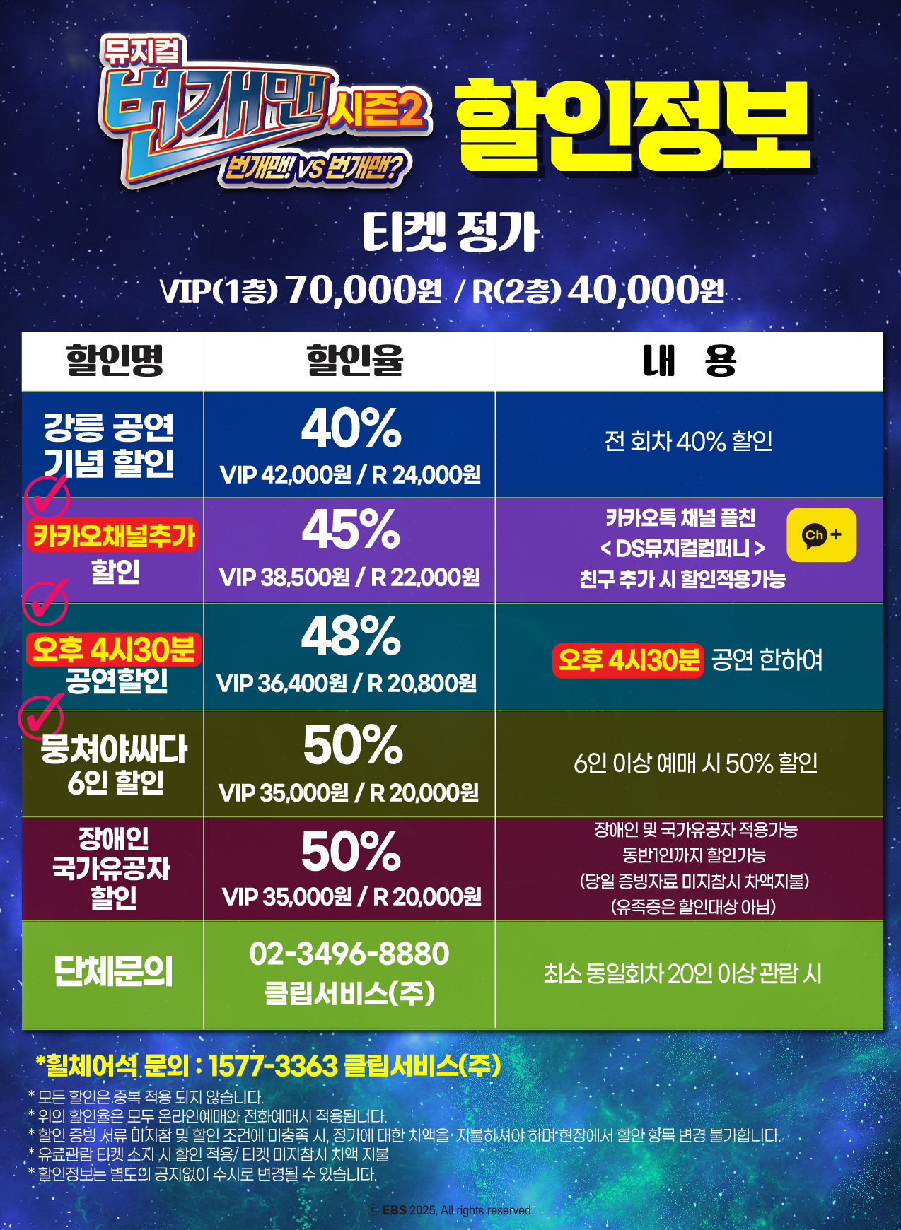 - 예매 후 7일 이내 취소시 티켓 금액 전액이 환불됩니다.(예매 수수료 제외)