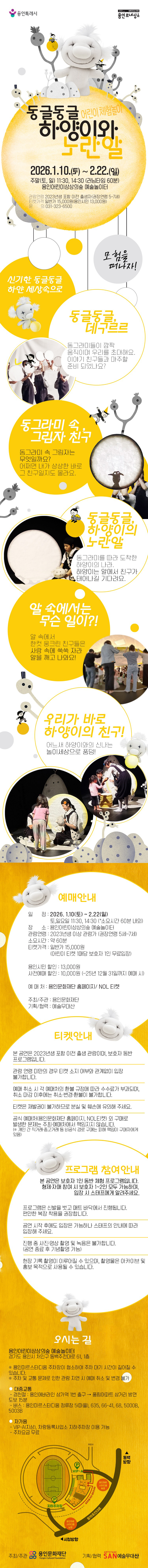 2026 용인어린이상상의숲 예술놀이터 어린이 체험놀이 〈동글동글 하양이와 노란알〉