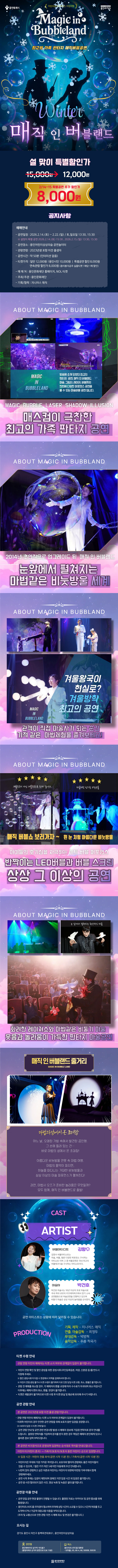 - 미취학 어린이의 경우 안전한 공연 관람을 위해 보호자 동반 입장을 권장합니다. (※ 보호자 입장 시 티켓 구매 필수)